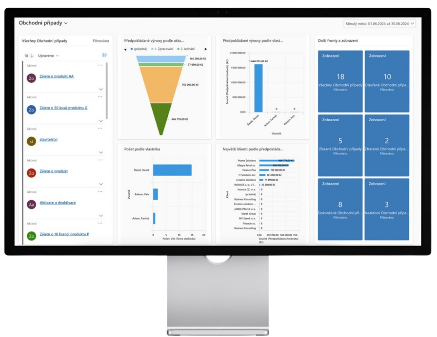 Analýza obchodního výkonu, aktivit i příležitostí v přehledných reportech a nástěnkách.