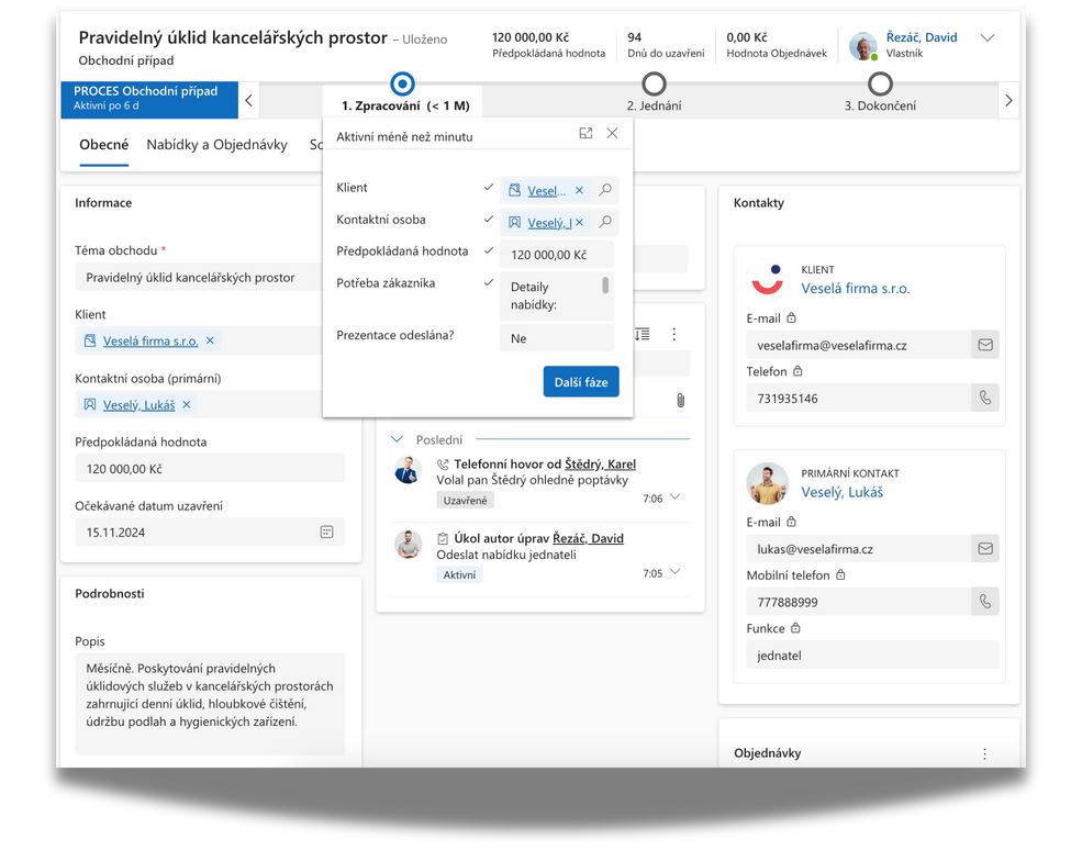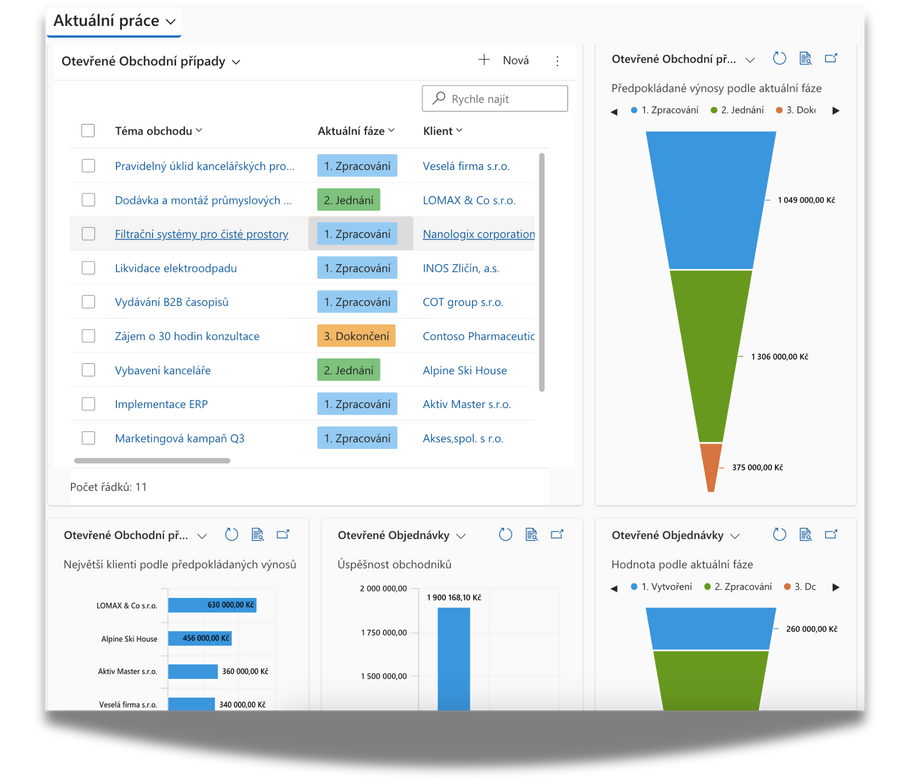 Díky přednastavenému obchodnímu procesu pohodlně řídíte všechny obchodní případy a vždy víte, v jaké jsou fázi.